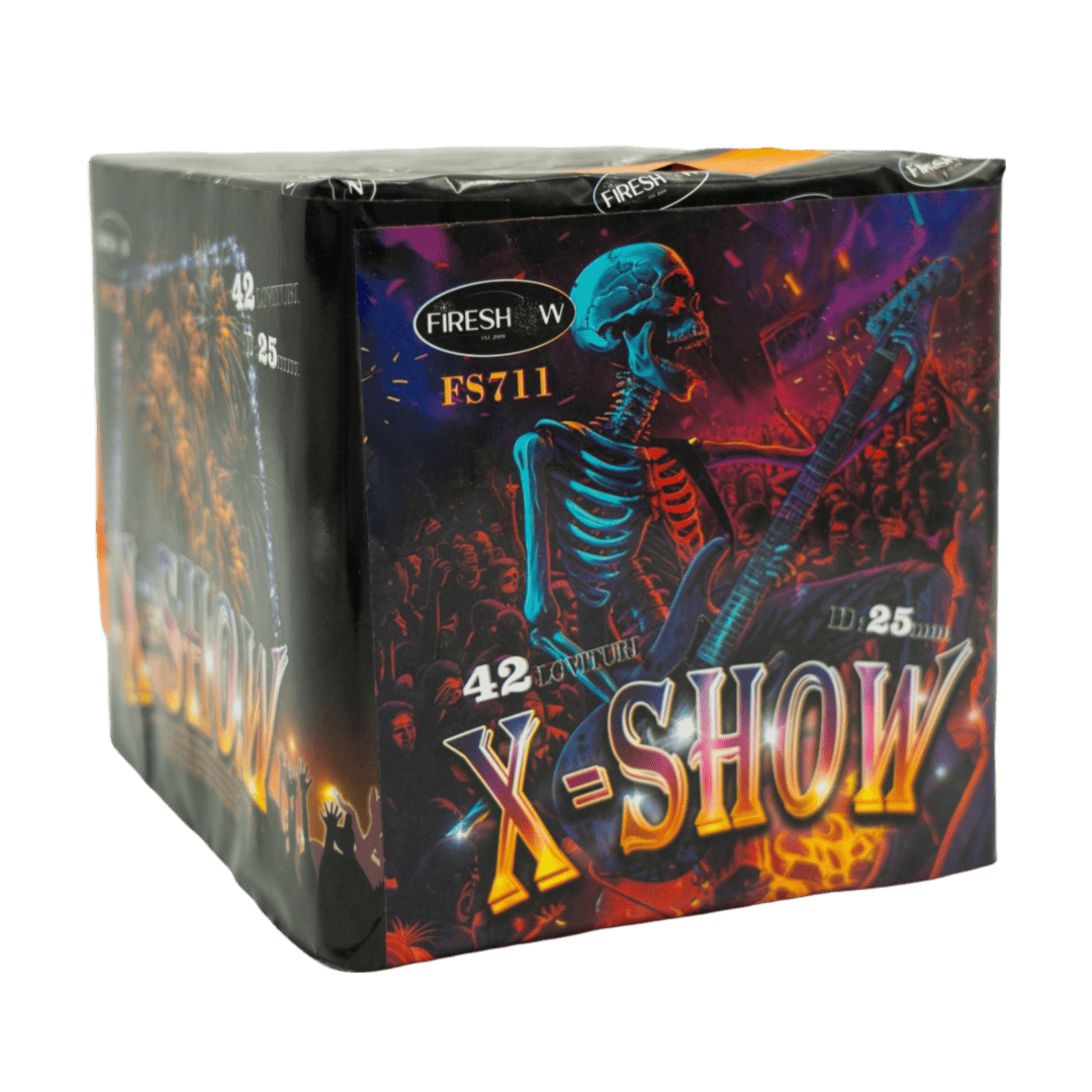 Bateria X-SHOW 42F oferă efecte spectaculoase timp de 30 de secunde, calibru 25 mm, fiind ideală pentru evenimente memorabile. Produs din categoria T1, destinat utilizării în exterior.