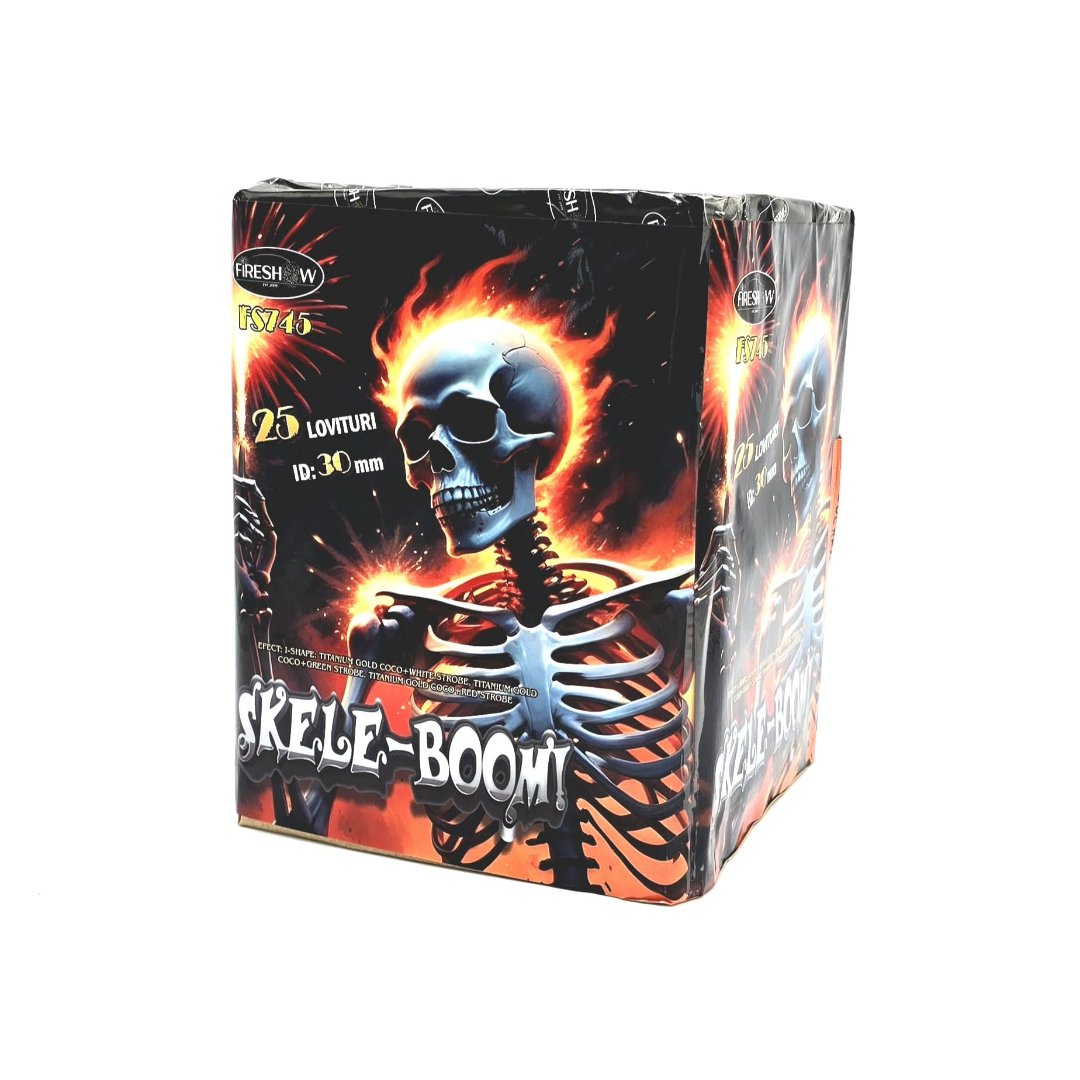 Transformă orice eveniment într-un spectacol memorabil cu Cometa „Skele-Boom”! Această baterie cu 25 de focuri și calibru 30 mm oferă o explozie intensă de culori, lumini și efecte comete spectaculoase. Face parte din Categoria T1, fiind destinată utilizării de către publicul larg, în condiții sigure.