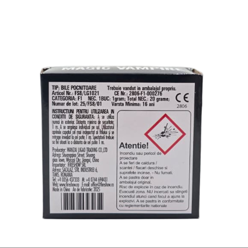 A se aprinde capătul cel mai îndepărtat al fitilului, din poziție laterală, apoi a se retrage imediat la cel puțin 20 m.